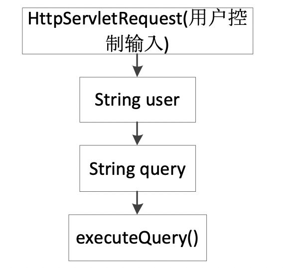 首先需要获取到输入方法HttpServletRequest::getParameter(),触发点executeQuery(),然后通过数据流进行分析,这里的数据流可以确定为: